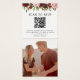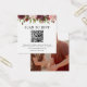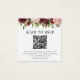 Cartão de inclusão de RSVP de casamento moderno com um design floral borgonha e rosado em aquarela rústica e um código QR que direciona os convidados para o site de casamento onde eles poderão responder online. O verso deste cartão quadrado apresenta uma foto para você excluir ou substituir pela sua.