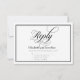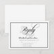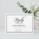 Sofisticado e elegante, este cartão de resposta de casamento em preto e branco com grafia graciosa combina com o conjunto de convites e acessórios de casamento "Fé, Esperança e Amor" da nossa suite de convites cristãos contemporâneos. Concebido por Natalie Schorr para Graphic Suite na Zazzle.