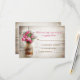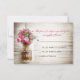 lindo cartão de resposta de casamento rústico - cartões de resposta de casamento com fundo de madeira desgastada e jarro de Mason com flores de cor rosa escuro. Sugiro um papel lino de textura linda para este design.