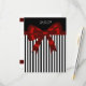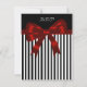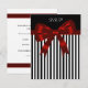 Cartão de resposta de convite de casamento com faixas modernas pretas e brancas e fita e laço vermelhos brilhantes.