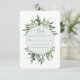 Cartão de resposta de casamento com moldura geométrica dourada e folhas. Moldura metálica verde com decoração de folhagem em aquarela. Parte de uma coleção.