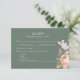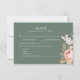 Eleve a experiência de planejamento do casamento com nosso Cartão de RSVP de Casamento com Peônias em Verde Sage Boho. Este cartão permite que seus convidados respondam ao seu convite e oferece opções de seleção de menu e preferências alimentares para garantir uma experiência gastronômica personalizada. No verso, personalize com o endereço do casal para uma devolução sem complicações. Faça de cada detalhe do seu dia especial memorável com este cartão de RSVP lindamente projetado e personalizável.