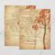 Cartão de resposta de RSVP de casamento de árvore de outono. O design representa uma árvore em cores de outono de laranja queimado e verde situada em um fundo de pergaminho envelhecido creme. Isso também pode ser usado como cartão de recepção, direção ou acomodação com alterações no texto.