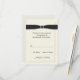 Uma placa RSVP de resposta ao casamento elegante feita em creme, com gráficos de um quadro de observação biselado em volta da área de texto e uma fita preta, com uma fivela de diamante brilhante. O tamanho é pequeno o suficiente para ajustado com todos os tamanhos de convite populares. Personalize o texto de acordo com as suas necessidades.
