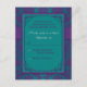 Este dramático cartão de resposta de casamento em damasco roxo e turquesa tem uma fita roxa IMPRESSA e um broche de jóias de diamante IMPRESSO que combina com o convite de casamento mostrado abaixo. A escolha do papel é personalizável. Se você precisar de outros itens correspondentes, por favor envie um email para niteowlstudio@gmail.com.