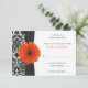 O texto neste cartão de resposta de RSVP de casamento com flores de damasco de gerbera laranja é totalmente personalizável. Para alterar o texto, use a opção personalizar. Para alterações mais extensas, como alterações na fonte, cor da fonte, tamanho da fonte ou layout do texto, use a opção personalizá-lo. As cores neste cartão são preto, laranja e branco e é um tema de cores único para um casamento no verão, outono ou até mesmo um casamento de Halloween. Este cartão é atualmente personalizado como um cartão de resposta de casamento, mas pode funcionar bem como um cartão de recepção, direção, acomodação e/ou informações gerais de casamento. Tudo o que você precisa fazer é alterar o texto. Este cartão está atualmente configurado para imprimir no tipo de papel colorido metálico gelo, mas ficaria bem em muitos outros tipos de papel. NOTA: Este convite é um design impresso plano sem quaisquer enfeites 3D ou em relevo.