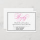 Sofisticado e elegante, este Cartão de Resposta RSVP de Casamento em Script Preto e Rosa coordena com nosso Conjunto de Casamento Fé Esperança e Amor Rosa e Branco de convites e acessórios cristãos contemporâneos. Projetado por Natalie Schorr para Graphic Suite na Zazzle.