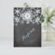 Este cartão de resposta de casamento LOOK em lousa de giz preta e branca, festivo e moderno, tem camadas de flocos de neve azuis claros e brancos que combinam com o convite de casamento de inverno mostrado abaixo. Seria perfeito para um casamento de inverno, casamento de Natal ou chá de noiva, uma festa de aniversário de inverno ou um baile de inverno ou outro evento. É mostrado aqui em papel básico. É facilmente personalizado com suas próprias informações. Há texto personalizável que você pode editar da maneira que precisar. ALÉM DISSO, observe que tudo será impresso como aparece no seu monitor. A Zazzle não editará nada para erros de digitação ou desalinhamento, etc., e eu não verei depois que você tiver feito o pedido. Se precisar de ajuda com sua redação, envie-me um e-mail ANTES de fazer o pedido. Se houver outros itens que você precise para tornar seu evento ainda mais especial, envie seu pedido para