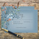 Este design do cartão de resposta do casamento apresenta lindas florais cor de ferrugem laranja azul e queimada em um retângulo branco suave colocado sobre um fundo azul empoeirado. Mole e delicada; perfeita para qualquer estação. Criado pela imprensa simplesmente de farmácia.