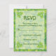 Rua. Cartão de resposta RSVP de casamento irlandês no dia de Patrick, com um padrão branco verde e um coração elegante feito de trevo/shamrock irlandês verde sortudo.