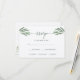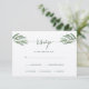 Projetado para combinar com a nossa coleção de casamento Olive Leaves, este elegante cartão de resposta apresenta folhas de oliveira sobre a data de resposta desejada e uma redação personalizada de aceitação e declínio. Um cartão de resposta de casamento rústico elegante. Este cartão permite que os convidados indiquem sua preferência de entrada com antecedência com um campo personalizado para suas opções de refeição.