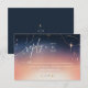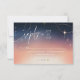 Complemente seu tema celeste de casamento com este Cartão RSVP Sunset para Moonrise, projetado para capturar a beleza da noite desaparecendo no dia. Apresentando uma impressionante mistura de pêssego azul, preto e branco suave, o fundo espelha a transição encantadora do nascer do luar para o pôr do sol. Perfeitamente coordenado com o Convite de Casamento de Moonrise para Sunset, este cartão RSVP garante que os seus convidados respondam em estilo ao mesmo tempo que define o tom para a celebração do seu eterno.