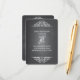 Cartão de recepção de casamento popular no estilo quadro negro é delineado por uma linda borda com desenhos em forma de pergaminho no topo e na parte inferior em um estilo de escrita de quadro negro. Uma mistura de tipografia formal e caprichosa dá a esta coleção de designs um visual elegantemente casual. Itens coordenados também disponíveis.