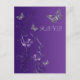 Este cartão de resposta floral cinza prateado e roxo com borboletas e flores em papel básico combina com o convite de casamento mostrado abaixo. É uma versão maior do cartão de RSVP que possui um envelope combinando. O cartão de RSVP de tamanho menor tem orientação horizontal e NÃO possui um envelope personalizado (ele vem com um envelope branco, como todos os convites e cartões). Se você precisar de ajuda para personalizar isso, ou se você precisar de outros itens combinando com este design, envie um e-mail para niteowlstudio@gmail.com.