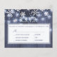 Cartão de RSVP de casamento com orçamento de texto editável FLYER com opções de menu com tema rústico de inverno, flocos de neve brancos e luzes penduradas cintilantes em fundo de madeira de celeiro azul-marinho escuro. Ideal para o seu casamento com tema rústico elegante de inverno. ++++++++++ POR FAVOR LEIA ANTES DE COMPRAR! Este é um cartão de casamento acessível impresso em FLYER. ++++ Observe que o PAPEL ORÇAMENTÁRIO É FINO - Você pode atualizar para ter este cartão impresso em papel cartão ++++ ENVELOPES NÃO INCLUSOS. +++ Verifique novamente todas as informações e ortografia do seu texto porque você receberá exatamente o que vê - ninguém mais verificará nada antes da impressão. ++++ Este cartão é projetado para o tamanho 4,5" x 5,6". Caso você escolha outro tamanho do cartão e o texto ultrapasse a página, tudo precisará ser corrigido antes de adicionar