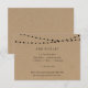 Texto de RSVP engraçado para um casamento divertido! O fundo é simples com luzes de corda rústicas e fundo de papel kraft maravilhosos.