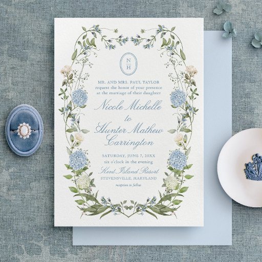 Elegant Dusty Blue Hydrangea Monogram SuiteCriado por Cari Colclough