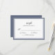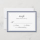 Cartão de resposta RSVP de casamento clássico. Escrito tradicional elegante em cinzas escuras dentro de uma dupla borda azul. Volta azul. Para ajustar o layout, clique em Personalizado, Editar Texto e, em seguida, clique em e arraste seções de texto para os locais desejados. Use Cntrl para selecionar e mover várias seções ao mesmo tempo.