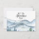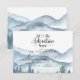 Cartão de inclusão de RSVP de casamento elegante e rústico com montanhas e cena de floresta em aquarela, apresentando árvores e montanhas azuis e verdes exuberantes com um texto em caligrafia: que a aventura comece. Para aqueles que amam um clima de bosque sonhador e romântico para sua cerimônia e celebração. Para ver a coleção completa de materiais correspondentes a este design, visite: https://www.zazzle.com/collections/rustic_forest_mountain_wedding-119965625201006103