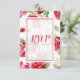 Cartão de resposta de impressão floral de rosa vermelha. Esta coleção elegante será perfeita para uma celebração de jardim interna ou externa para um casamento, chá de noiva, chá de bebê ou uma celebração de estilo country. Toda a coleção é personalizável. Aproveite sua celebração, saúde!