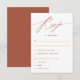 Um simples design de cartão de resposta perfeito para o seu casamento. Apresentando um script minimalista e texto limpo, este cartão facilita para os hóspedes RSVP para o seu casamento. Os convidados podem aceitar, recusar e escolher as suas opções de refeição.