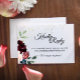 Este cartão de resposta do site de noivado “Celebração de Verão” inspira uma atmosfera floral tradicional e elegante para um casamento no jardim. Com flores rosa, azul real e borgonha cabernet, a paleta de vermelhos ricos e azul-marinho combinada com brilho dourado complementa temas formais de primavera, verão e outono, criando uma experiência clássica e versátil de celebração de casamento de luxo.