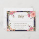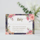 Um lindo desenho boho de flores selvagens/flores em um fundo azul-marinho, e fundo azul-marinho complementar. Use este cartão de RSVP coordenador para encorajar seus convidados a responder prontamente! Edite os campos de texto disponíveis para atender às suas necessidades, para criar o conjunto de casamento perfeito. Outros itens e papelaria nesta coleção, como adesivos de favor, cartão de informações, números de mesa, etc.! Perfeito para casamentos e festas/eventos em qualquer época do ano, mas especialmente adequado para a primavera e o verão. Um design muito elegante.