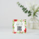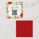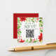 Este clássico cartão de resposta de casamento de Natal vermelho apresenta flores de poinsettia brilhantes com bagas de azevinho e folhagens ao redor de um código QR do site para que os convidados o leiam e respondam. Um cartão de resposta botânico festivo e brilhante para um casamento de férias com escrita verde.