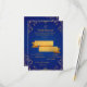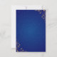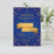 Complete seu conjunto de papelaria de casamento azul e dourada com este cartão de RSVP luxuoso que apresenta detalhes sofisticados nos cantos em dourado. Projetado para combinar perfeitamente com o conjunto de convites, este cartão de resposta permite que os convidados confirmem sua presença com estilo.