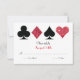 Perfeito para um casamento em Las Vegas, este cartão de resposta RSVP se coordena perfeitamente com o convite correspondente e apresenta os traços de um baralho em preto e vermelho falso.