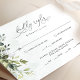 Este roteiro verde RSVP Card é perfeito para um casamento minimalista. Letra caligráfica manuscrita moderna e simples, emparelhada com uma fonte típica de serifa itálico. Personalizável em qualquer cor. Mantenha o design mínimo e simplista, como está, ou personalize-o adicionando gráficos e trabalhos de arte.
