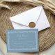 Nossa carta de resposta de casamento no estilo de casa mínima apresenta caligrafia moderna em uma matiz azul doce e empoeirada para permitir que seus hóspedes respondam ao convite de casamento.