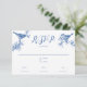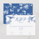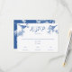 O cartão de resposta RSVP de casamento de primavera em azul delft com pássaros é projetado para combinar com nossa coleção de convites de casamento de primavera em azul delft com pássaros. Com elegantes pássaros azuis delft empoleirados em uma delicada ilustração de flores em galho, este convite captura a beleza encantadora do casamento na primavera. Itens correspondentes estão disponíveis.