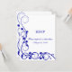 © Socialite Designs. Cartão de resposta / RSVP de redemoinhos branco e azul real elegante pronto para ser personalizado com suas próprias informações. Incluímos uma opção de resposta por e-mail para este cartão de resposta elegante. Escolha entre vários tipos de papel de convite. Precisa de AJUDA com a personalização? Por favor, não hesite em entrar em contato comigo com seus requisitos.