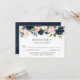 Cartão de resposta RSVP de casamento com elementos florais rosa e azul marinho