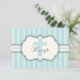 Um design de listras adorável num esquema de cor azul e creme. Adorado com uma cruz coordenada na frente, é apropriado para qualquer celebração sacramental, com texto personalizável nas costas. Faz um belo cartão de resposta RSVP para a família e amigos para a Primeira Comunhão do seu filho, Baptismo, Christening ou Confirmation e coordena perfeitamente com nossos convites correspondentes no mesmo design.