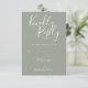 Este elegante cartão de resposta prata sálvia pode ser personalizado com letras elegantes em branco. Você pode adicionar informações adicionais, como escolha de menu no verso. Projetado por Thisisnotme©