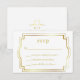 Cartão de resposta white e gold. A moldura e as letras em folha de ouro falso tornam este um design elegante para acompanhar qualquer convite