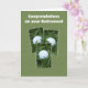 Este cartão de aposentadoria das bolas de golfe apresenta três bolas de golfe no centro aninhadas na grama com as palavras "Parabéns na sua aposentadoria" ao longo do topo. Claro que o cartão é verde! Um cartão de aposentadoria divertido! Copyright Kathy Henis
