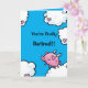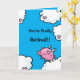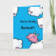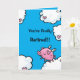 Um cartão de aposentadoria com um porco cor-de-rosa digital com pequenas asas brancas, dança em nuvens embelezadas com corações no céu azul brilhante. Perfeito para alguém que está em descrença que está finalmente se aposentando. Personalizar todo o texto de acordo com as suas necessidades