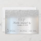 Lindo cartão de RSVP de casamento no bokeh de brilho prateado pode ser personalizado com o seu texto. Selecione o botão "personalizar" para alterar o estilo da fonte, cor e tamanho.