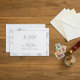 Um cartão de RSVP limpo e moderno com um efeito de textura de mármore cinza suave com "RSVP" em letra cursiva cinza elegante em um fundo branco crocante. Campos simples e fáceis de ler fornecem espaço para detalhes de contato, nomes, endereço e qualquer informação adicional para combinar com a papelaria de casamento. O texto, nomes e data podem ser totalmente personalizados para se adequar a qualquer estação.