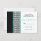 Cartão de RSVP Damask Preto Branco Turquesa