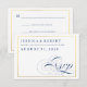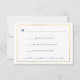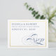 Um cartão de RSVP de casamento tradicional e elegante com script de caligrafia azul marinho e branco com borda dourada (ISSO NÃO É FOIL).