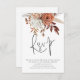Cartão de RSVP de casamento com código QR de flores de terracota Boho Rust, facilitando que seus convidados respondam digitalizando seu código QR que leva à página de resposta do seu site de casamento. O RSVP está em um conjunto estiloso e personalizável, basta substituir a URL de exemplo no verso pela sua.