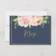 Projetado para combinar com a nossa coleção de casamento Bloomsbury, este cartão de RSVP de casamento elegante apresenta uma bela disposição floral de aguarela rosada e letras manuscritas. Personalize-o com seus detalhes de forma fácil e rápida, basta pressionar o botão personalizar para reorganizar e formatar o estilo e a colocação do texto. (c) The Happy Cat Studio