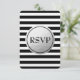 Cartão de RSVP de casamento com listras preto e branco e folha de prata. Itens correspondentes disponíveis.