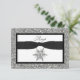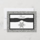 Este cartão de RSVP de casamento de inverno preto e branco, chique e festivo, tem uma fita e laço PRETOS impressos com um floco de neve com visual brilhante (impresso) que combina com o convite de casamento mostrado abaixo. Se você precisar de outros itens correspondentes neste design ou se desejar uma combinação de cores diferente, envie um e-mail para niteowlstudio@gmail.com.