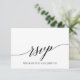Este cartão de RSVP de solicitação de música com caligrafia preta elegante é perfeito para um casamento simples. O design neutro apresenta um cartão minimalista decorado com tipografia romântica e caprichosa. Construa sua lista de convidados de casamento e sua lista de músicas para pista de dança de uma vez! Este cartão de resposta de casamento convenientemente pergunta aos convidados se eles poderão comparecer ao seu casamento e também qual música os fará dançar.