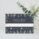 Projetado para combinar com nossa coleção de casamento Winter Sage, este cartão de RSVP botânico elegante apresenta folhagem pintada à mão com aquarela e folhagens emoldurando a data de resposta desejada e a redação personalizada de aceitação e declínio. Um fundo azul-navy profundo e rico adiciona contraste e um visual luxuoso para casamentos de inverno.